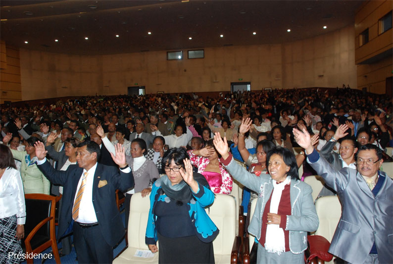 Un culte œcuménique, organisé par la FFKM entrant dans le cadre de la célébration du 52ème anniversaire de l’Indépendance, s’est déroulé cet après-midi du dimanche 17 Juin 2012 au Centre de conférences internationales d’Ivato (CCI). Le président de la Transition, Andry Rajoelina, le président du Conseil Supérieur de la Transition, Dolin Rasolosoa, quelques membres du Gouvernement, ceux du CST et ceux du CT, des hauts responsables civils et militaires, ont honoré de leur présence ce culte œcuménique. Cependant, les sensibilités proches de l’opposition se sont absentées, à l’instar de la mouvance Ravalomanana qui avait fait savoir qu’elle ne prendrait part à aucune cérémonie dans le cadre de la célébration officielle de la fête nationale.
