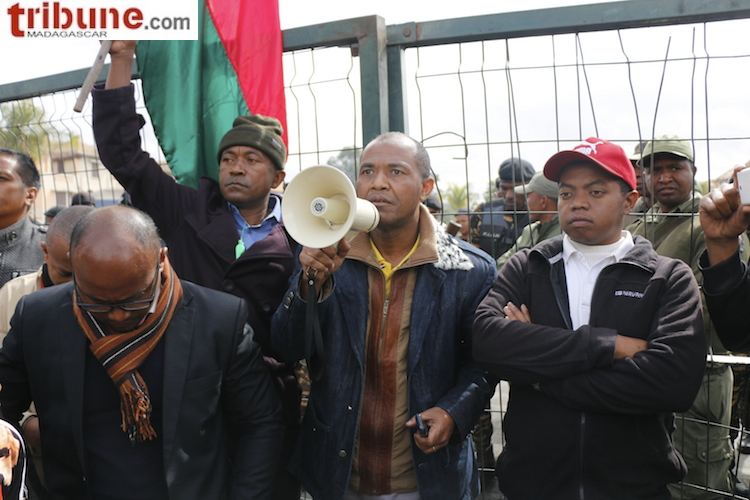 Arrivée au niveau de la place du 13 mai, le virevoltant Pety Rakotoniaina, un des meneurs de HFI et non moins président national du parti Tambatra, a essayé de négocier avec les Forces de l’ordre en déclarant que « la foule qui accompagne le mouvement HFI a les mêmes droits que celle qui a suivi et assisté le mouvement des députés pour le changement et ne doivent en l’occurrence pas être interdit d’entrée au parvis de l’Hôtel de Ville ».
