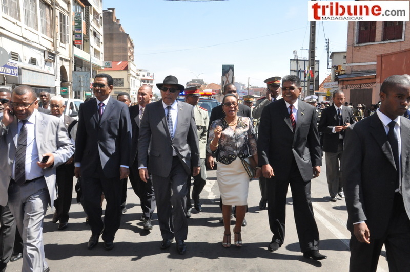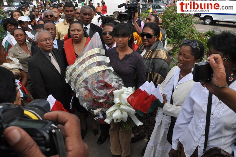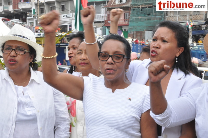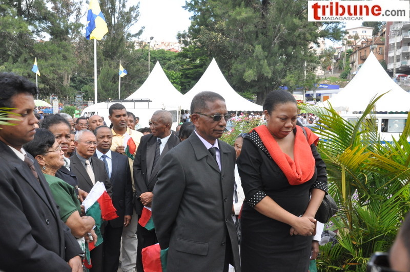 Les temps ont vraiment changé. Pour la première fois, la commémoration des événements de 1947 a été l’occasion d’une manifestation pacifique de contestation d’une décision de justice prise par la plus haute juridiction du pays, maintenant qualifiée de dictatrice et de ségrégationniste. Les femmes du groupement « Miaraka amin’i Prezidà Andry Rajoelina » ou MAPAR ont manifesté leur mécontentement et leur opposition à la dissolution du bureau permanent de l’Assemblée nationale. Conduite par la présidente de l’Assemblée nationale, Christine Razanamahasoa, ces femmes du MAPAR ont déposé des gerbes en l’honneur des femmes au pied de la stèle commémorative à Ambohijatovo ce samedi 29 mars 2014. Poings fermés mais dans le sourire, elles ont eu libre champ pour manifester contrairement à ceux qui en leur temps, sous la transition, avaient en de pareilles occasions été huées et refoulées par les forces de l’ordre. Appréciez les photos.