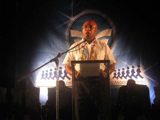 La séance a commencé par une projection vidéo sur la Convention nationale du MDM tenue le 28 février 2010 dernier à l’hôtel Carlton à Antananarivo à travers laquelle l’éthique et l’objectif du MDM qui consiste à instaurer la démocratie par la réconciliation à la manière malgache ou le Fihavanana ont été expliqués.