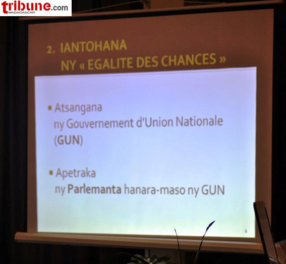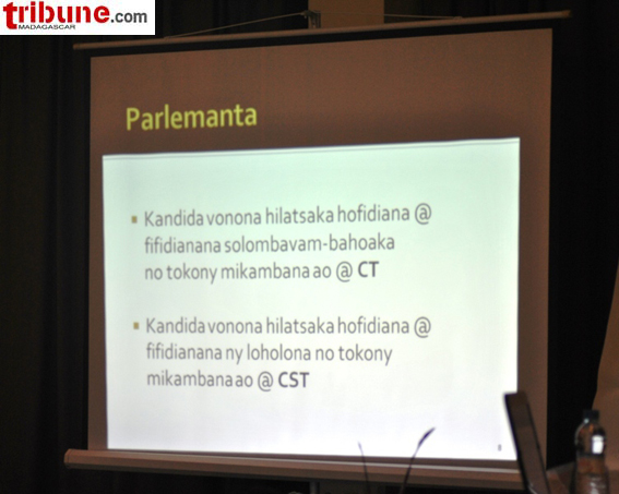 Le Pr Blanche Nirina Richard avait été la dernière à intervenir parmi les trois invités lors de la conférence-débat du samedi 5 mars dernier au Centre Arupe de l’EKAR Faravohitra. Elle a expliqué en près de 15 minutes seulement, slides à l’appui (voir le diaporama) qu’il faut assurer l’égalité des chances à tous ceux qui se portent candidat à n’importe quelle élection.