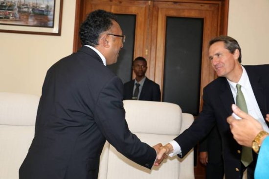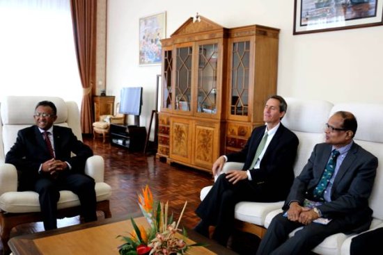 Le président de la République, Hery Rajaonarimampianina, a reçu ce lundi 14 juillet 2014 au Palais d’État d’Iavoloha, le directeur exécutif du Conseil de concertation pour l’approvisionnement en eau et l’assainissement (WSSCC), Chris Williams, accompagné par le ministre de l’Eau, Ndahimananjara Johanita. L’assainissement est un point stratégique pour le développement social et économique. Des investissements ciblés permettront d’améliorer les conditions de vie et de travail d’un grand nombre de personnes.