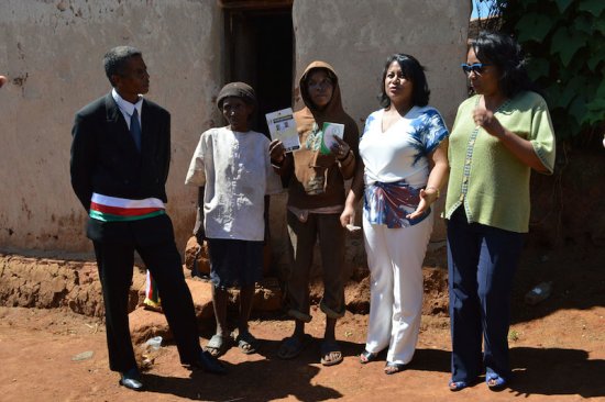 "Les familles bénéficiaires sont sélectionnées par un comité local composé du Président du Fokontany, du Directeur d’école, ainsi que des agents du MPPSPF, du Ministère de la Santé et de la Secaline. Le choix du comité local est ensuite validé ou pas.."