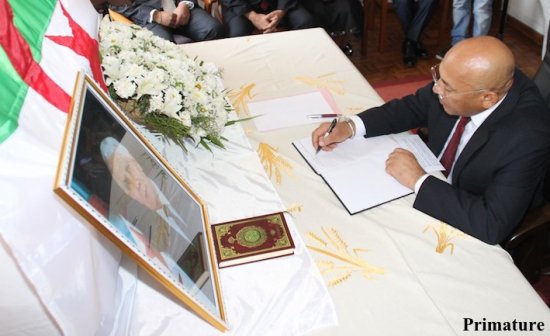 Suite au décès de l’ancien président algérien, Chadli Bendjedid, survenu le 6 octobre dernier, le Premier ministre de consensus du gouvernement d’union nationale de la Transition, Omer Beriziky, a conduit ce mercredi 10 octobre 2012, une forte délégation composée du Vice-Premier ministre chargé du Développement et de l’Aménagement du territoire, du Vice-Premier ministre chargé de l’Économie et de l’Industrie, du ministre des Affaires Étrangères, de la ministre de la Décentralisation, de la ministre de l’Élevage et du ministre des Forces armées à l’ambassade d’Algérie à Behoririka. Au nom de l’État et du peuple malgache, le Premier ministre a présenté ses condoléances au peuple algérien et à la famille de l’illustre défunt Chadli Bendjedid, ancien président de la République algérienne Démocratique et Populaire.