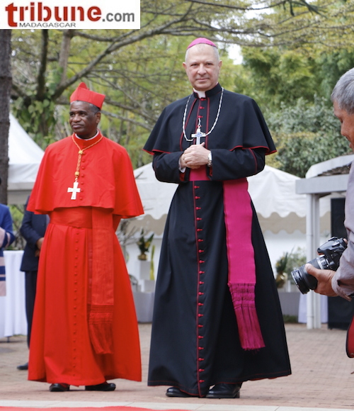 « Une pléiade d’invités dont beaucoup de politiciens a été aperçue hier lors de la RÉCEPTION organisée en l’honneur du nouveau cardinal malgache, Désiré Tsarahazana à la NONCIATURE apostolique à Ivandry. Le CHEF D.’ÉTAT , Hery Rajaonarimampianina, avec son épouse a assisté à cette cérémonie ... »