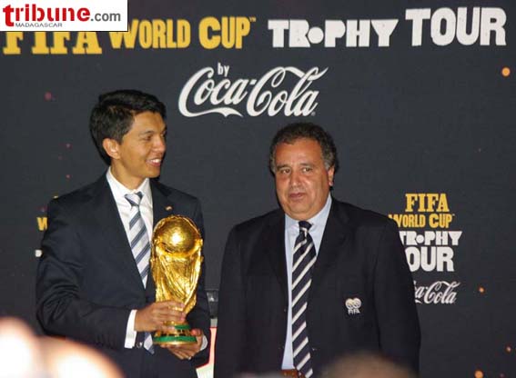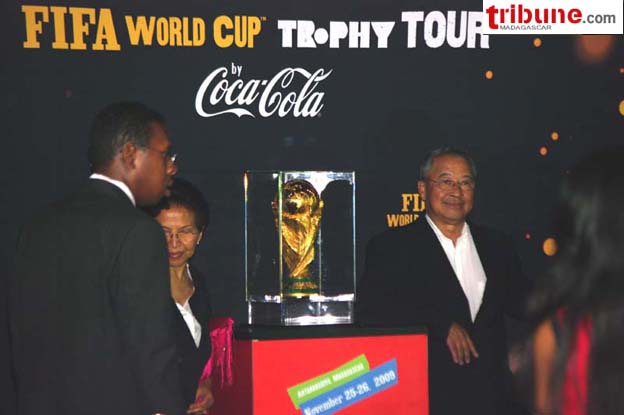 Arrivé ce mercredi soir du 25 novembre 2009, par avion de la FIFA, le trophée de la coupe du monde a atterri le soir même entre les mains du président de la transition, Andry Rajoelina. Sa réception a fait l’objet d’une grande manifestation au Carlton. Ce trophée est exposé au Palais des Sports de Mahamasina où l’accès est libre jusqu’au 3 décembre 2009.