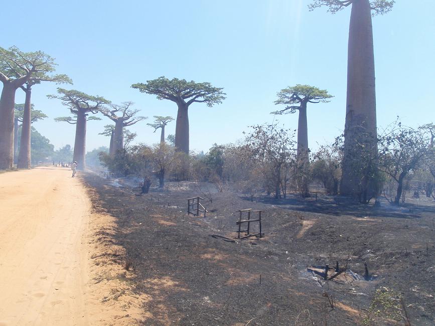 Il ne manquait plus que çà. Des forêts sont illicitement exploitées dans le pays betsileo a-t-on entendu lors de la séance des questions-réponses au CST ce lundi 26 novembre. Les trafics de bois de rose ont détruit l’image de nos parcs et du pays alors que l’on attend toujours les solutions. Et puis soudain on apprend par la presse que les baobabs sont décimés par le feu dans le Menabe alors que l’insécurité plane toujours dans le sud. En tout, rien d’encourageant pour la destination Madagascar. Par souci de précisions et transparence à l’égard des bailleurs de fonds et vraisemblablement dans la perspective de mettre en confiance les touristes, l’Ong Fanamby, en charge de la gestion des aires protégées de l’Allée des Baobabs, a diffusé des informations et des photos concernant les feux sur l’Allée des Baobabs, le Samedi 24 novembre 2012, car quelques informations sont erronées au niveau de la presse écrite.