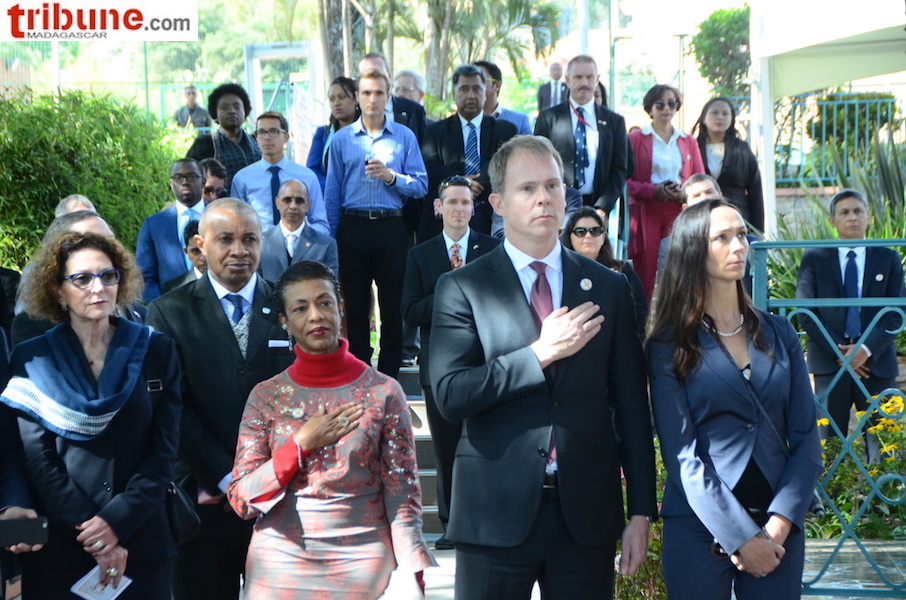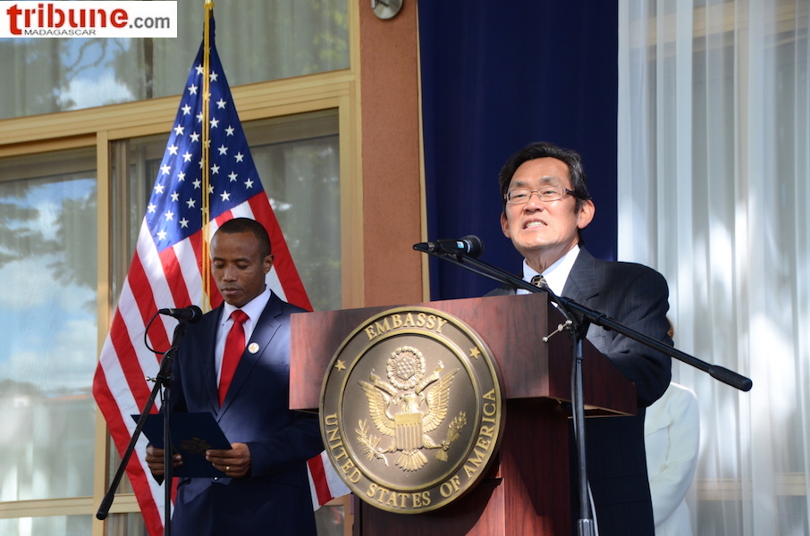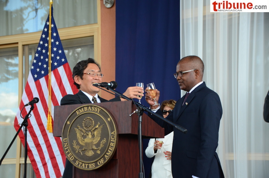 La cérémonie de célébration des 241 ans d’indépendance des Etats-Unis d’Amérique s’est déroulée à la Résidence de l’ambassadeur américain à Ambaranjana en présence de nombreuses personnalités (voir le diaporama) et du ministre de la Défense nationale qui a représenté le gouvernement malgache. Dans son discours l’ambassadeur Robert Yamate a noté la disponibilité comme toujours des Etats-Unis à aider Madagascar à instaurer la démocratie qui est en cours. Mais il a surtout fait comprendre certaines recommandations par rapport aux élections : des élections libres, transparentes et sans exclusion. Quelques soient les divergences de vue et d’opinion, la transparence du processus est impérative et aux électeurs de s’exprimer et de choisir, a-t-il insisté. Et il a cité en exemple les dernières élections américaines qui ont porté le candidat Donald Trump à la magistrature suprême des Etats-Unis.