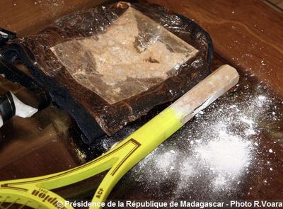 Les autorités malgaches appellent à l‘extrême vigilance de toute la population, notamment en ce qui concerne la préservation de la jeunesse face à ces risques réels d’introduction de drogue dure, et face à toutes sortes de forme de terrorisme et de blanchiment d’argent. C’est ce qui ressort de la présentation d’un échantillon des drogues saisies au port du Toamasina. Un échantillon des drogues saisies au port du Toamasina, par les autorités douanières et les forces de l’ordre, ont été présentées au Président de la République Marc Ravalomanana, dans l’après-midi du mercredi dernier. Cet échantillon qui fait partie de la cargaison de drogue, cocaïne et héroïne, transportée dans un container, a été saisie au Port de Toamasina, par les autorités douanières et les forces de l’ordre. La présentation à Iavoloha a été effectuée par le Directeur Général des Douanes, lui-même, Vola Razafindramiandra. Cette cargaison en provenance de Pakistan a été importée par une société implantée à Madagascar. Selon les explications du Directeur Général des Douanes, Vola Razafindramiandra. La cocaïne a été dissimulée dans la manche de 35 raquettes de tennis (environ 10g par raquette), tandis que l’héroïne (environ 10kg) a été cachée dans quelque 108 petites serviettes. Ces stupéfiants que le scanner n’a pu détecter avaient été interceptés grâce au savoir-faire et à la collaboration entre les services de renseignements, des autorités douanières, et les gardes côtes. La valeur de la cargaison se chiffre à 600.000 Ariary le gramme pour la cocaïne, et 300.000 Ar le gramme pour l’héroïne, selon le Directeur Général des Douanes.