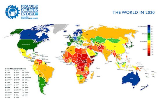 Dans le classement 2021 par Fund For Peace des pays à risque d’éclatement [1], Madagascar est classé à la 57ème place… 57ième place sur 179, dans ce classement des « Etats fragiles », que le vocabulaire de la bien-pensance diplomatique ne dit plus « Etats Faillis ». On se dira, « Oouf !!! Il y a donc pire que nous en termes de défaillance de l’Etat ».