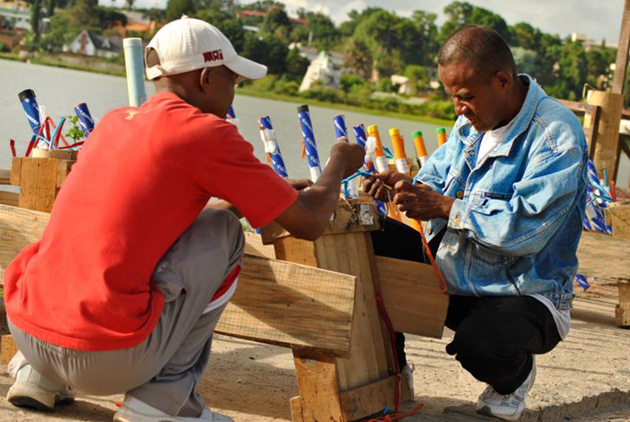 Les berges du Marais Masay ont hébergé ce vendredi 4 mars 2011 les manifestations d’ouverture des jeux de Loto 6/42 organisés par la société Loterie Malagasy. Ce fut l’occasion pour votre reporter de vous faire découvrir en photos les coulisses d’un tel événement, dont l’organisation a été confiée au Colonel Rakotosalama qui conduit une équipe de quatre officiers et sous-officiers. Les produits ont été importés de l’île Maurice et sont arrivés avec un responsable, en l’occurrence Bernard Flieg, artificier lui aussi.