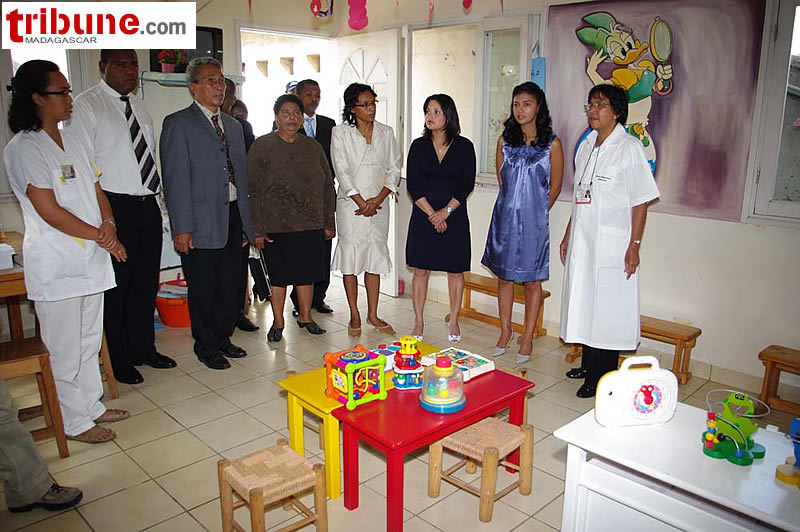 Mmes Mialy Rajoelina et Sylvie Roindefo ont visité l’hôpital des enfants à Tsaralalàna et ont effectué une remise de dons à cet établissement.