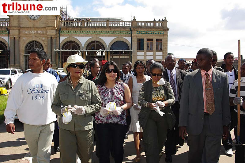 Ce même jour, la Commune Urbaine d’Antananarivo et le personnel de plusieurs ministères ont entamé une campagne de nettoyage de la ville. L’épouse du premier ministre y a également participé, en compagnie notamment de Michèle Ratsivalaka, maire d’Antananarivo, et de Nadine Ramaroson, ministre de la Population.