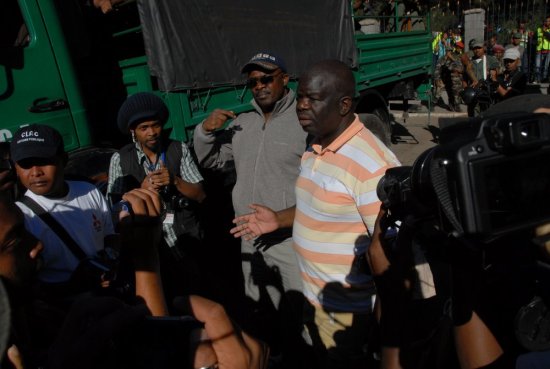 Peu avant 15h, le président du Congrès de la Transition, Mamy Rakotoarivelo, et plusieurs autres parlementaires, arrivaient, à pieds et fortement escortés, vers la Place de la Démocratie. La foule compacte se joignait à eux et envahissait la chaussée.