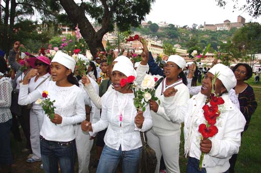 Les femmes « légalistes » vêtues de blanc et munies chacune d’une tige de fleur, ont ce jeudi 16 avril, fait encore une fois une marche dans le calme et couronnée de succès. La marche a commencé depuis le jardin d’Antanimbarinandriana, ex-jardin du Square Poincaré, pour joindre le palais de la Haute Cour constitutionnelle où une délégation des manifestants a déposé une requête contre la suspension du Parlement et une autre requête pour annulation de l’ordonnance 2009/01 du 17 mars 2009 relative au transfert du pouvoir à un directoire militaire du moment que le directoire ne l’a pas pris. Les manifestants ont aussi déposé auprès de la HCC, un décret portant numéro 2009/240, pris à Tripoli (Libye) par le président Ravalomanana et relatif à la nomination d’un Premier ministre, en la personne de Manandafy Rakotonirina.