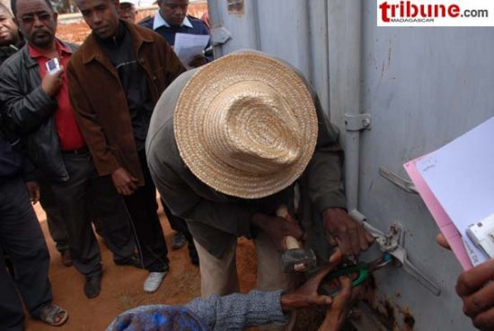 La saisie et l’ouverture par effraction du conteneur déplorées par la société RDM ce 1er septembre 2010, car effectuées sans décisions de justice, ont stupéfié à plusieurs titres la presse et l’assistance des deux parties en conflit. L’usage du marteau et du burin (il ne manquait plus que le « mpiandry » ou le dadarabe) nous rappelle les prises des ministères en son temps.