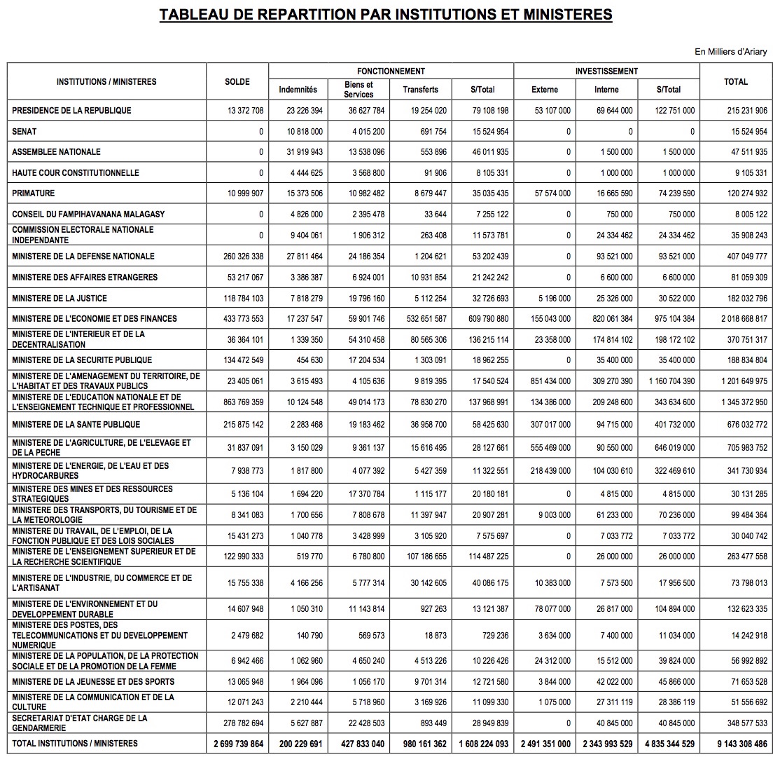 – La présidence , la primature, l’assemblée, la défense(les généraux) ont plus de dotation, que la sécurité , que la santé(les hôpitaux), que l’hydrocarbure et de l’eau.