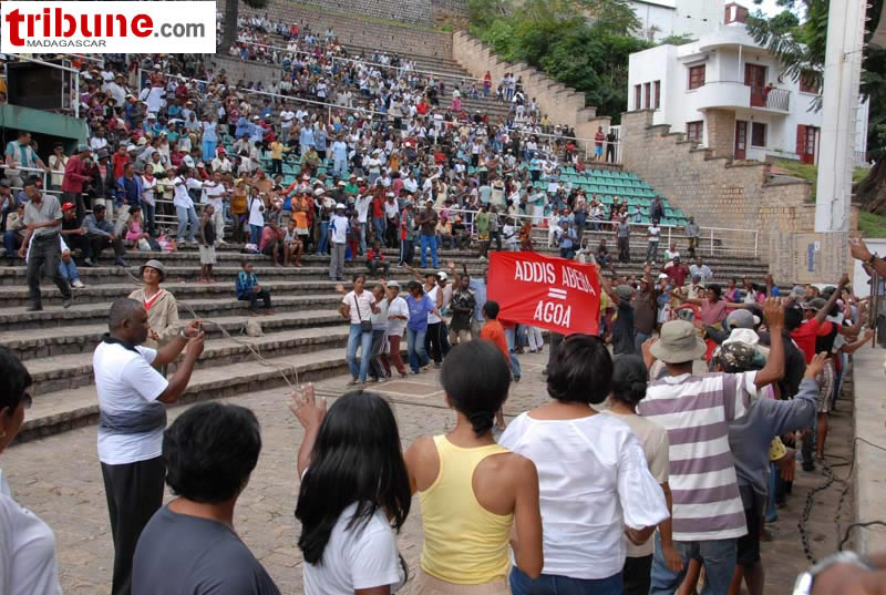 Confrontées ces derniers jours à une baisse de la fréquentation publique de leurs manifestations, les trois mouvances ont choisi de changer de lieu de manifestation en tenant ce Vendredi meeting au théatre de verdure d’Antsahamanitra.