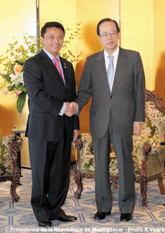 Avec le Premier Ministre japonais Fukuda, le Président Ravalomanana a évoqué le renforcement de la coopération bilatérale. L’objectif est d’assurer la continuité et le raffermissement des relations diplomatiques et de coopérations financière, économique, technique et culturelle établies jusqu’ici. Ils ont abordé ensemble la concrétisation des projets actuels concernant la construction d’infrastructures portuaires et aéroportuaires, à Toamasina, comme à Antananarivo, mais également la création d’établissements scolaires à travers l’île.
