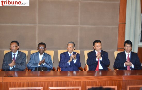– La réconciliation de la classe politique et les acteurs des deux crises, 2002 et 2009. Il me semble que les cinq hommes qu’on voit sur la photo à Ivato sont bel et bien les principaux acteurs politiques des crises de 2002-2009.