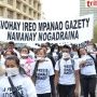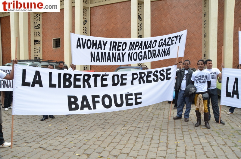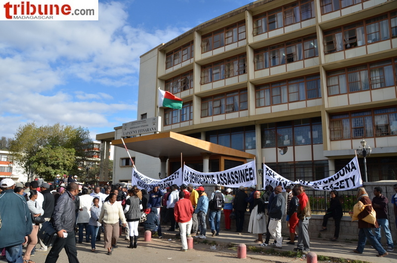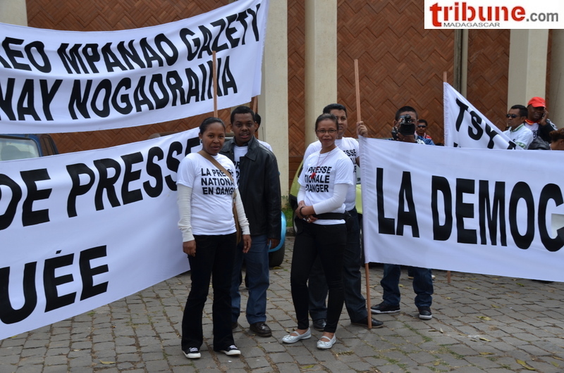 Les journalistes sont venus en masse avec des banderoles au procès de Didier Ramanoelina, rédacteur en chef du journal Madagascar Matin et Jean Luc Rahaga, directeur de publication de ce même journal. Ont été vus sur place, tous les organes de presse de toutes les tendances et de tous les canaux (radio, télé, presse écrite), toutes les catégories de gens du métier, entre autres, des metteurs en page, des reporters, des rédacteurs, des patrons de presse. La salle d’audience était pleine comme un œuf.