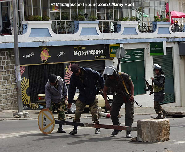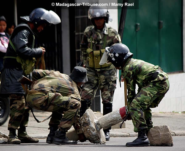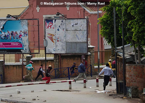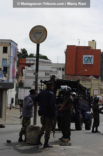 Les pro-Ravalomanana se sont encore donnés rendez-vous à Ambohijatovo ce lundi 27 avril 2009. Ils venaient de partout mais les forces de l’ordre leur ont interdit l’accès à la Place de la démocratie. Les forces de l’ordre ont procédé à des tirs de gaz lacrymogènes pour les disperser. Il n’y a pas eu de morts mais des blessés légers apparemment. Mais aussi des arrestations. Les barrages de pierres se sont multipliés pour empêcher des renforts d’éléments mobiles armés à bord de voitures 4X4.