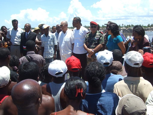 Le Premier ministre a mis du temps pour venir au chevet des populations sinistrées des fortes pluies qui sont tombées dans la nuit du jeudi 6 janvier 2010 et qui avaient provoqué des inondations à Tuléar I et II. Accompagné de son épouse, du ministre de l’Économie, Fienena Richard, ainsi que du conseiller spécial Zafera Maxime, le général Camille Vital a été ce mercredi 12 janvier 2010 au chevet des sinistrés. Il s’est également rendu dans les quartiers pour constater les dégâts et présenter par la suite ses condoléances aux familles des deux personnes décédées lors de cette catastrophe.