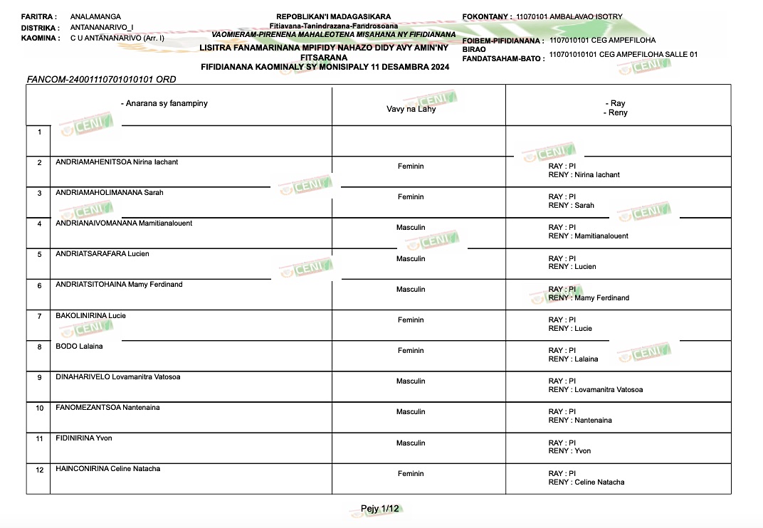 Merci Ikala Paingotra pour ce document révélateur des actes frauduleux de la CENI. Ils prennent vraiment les électeurs pour des idiots. Quand on triche au moins on le fait intelligemment.