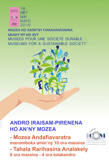Le 18 mai 2015 sera pour la communauté mondiale, une journée consacrée aux musées. Le thème commun sera « Musées pour une société durable ». Dans le cas de Madagascar, les derniers événements de l’île Sainte Marie, avec la mise à jour des trésors de navires pirates par une équipe anglo-américaine conduite par Barry Clifford, font de cette journée une fixation intellectuelle, patrimoniale, économique ou plus exactement touristique, dans une perspective de développement durable. En tout cas, le Comité national malagasy du Conseil International des Musées (ICOM), dirigé par Dr. Chantal Radimilahy, prévoit pour ce 18 mai des manifestations qui vont se dérouler au « Tahala Rarihasina » à Analakely, entre autres, expositions et conférences. Chantal Radimilahy développera certainement ce thème de la journée qui reconnaît le rôle des musées pour transmettre, faire percevoir et sensibiliser le public à la nécessité d’une société plus économe et solidaire, d’une utilisation des ressources plus mesurée et plus respectueuse des systèmes vivants.