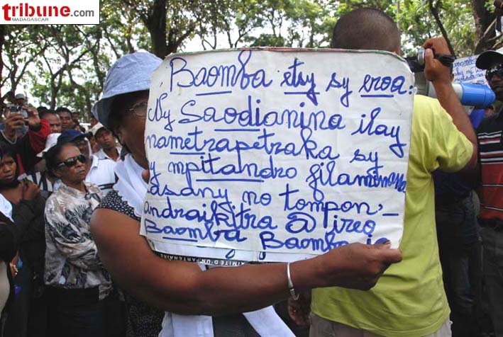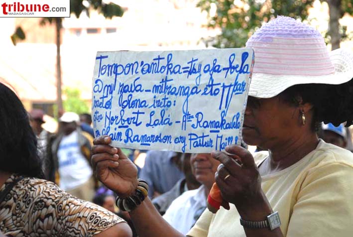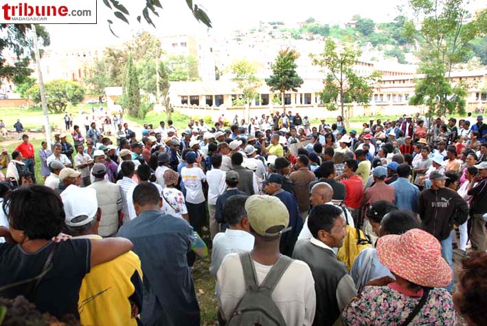 Reprise timide du meeting des partisans des 3 mouvances ce lundi 1er février 2010. On se souvient que faute de pouvoir s’installer dans le jardin situé en face du palais du Sénat, les partisans des 3 mouvances s’étaient déplacés du côté de Mahamasina ; mais suite aux échauffourées du jeudi 21 dernier, les jardins qui se trouvent devant le stade ont été barricadés pour cause de réhabilitation. Aussi ce lundi, ces partisans des 3 mouvances s’étaient donnés rendez-vous à l’ex- Square Poincaré ou Antanimbarin’Andriana. Le meeting n’a pas réuni grand monde mais ceux qui étaient présents ont pu s’exprimer, malgré la présence des forces de l’ordre. Les orateurs et animateurs du meeting ont appelé à un autre rassemblement sur la même place ce mardi 2 février à partir de 13 heures.