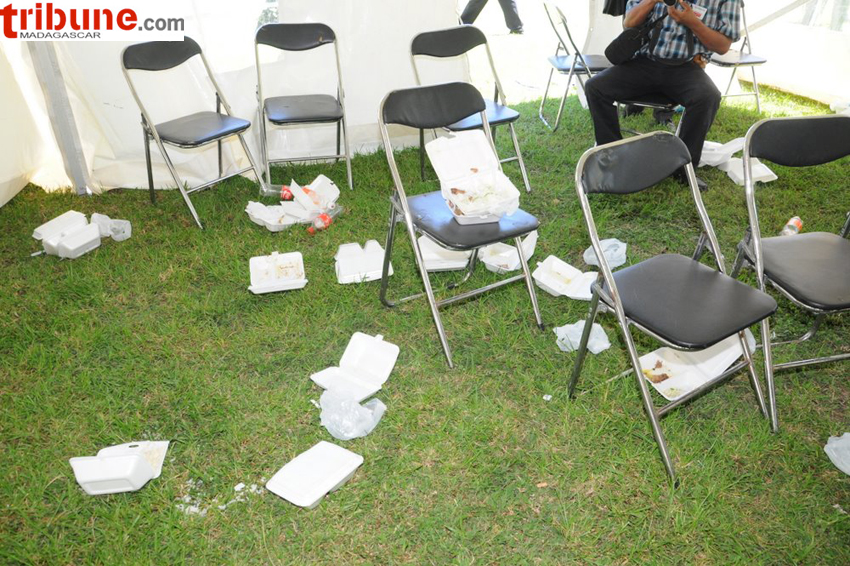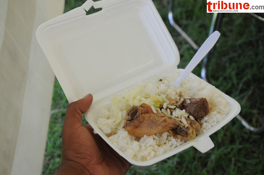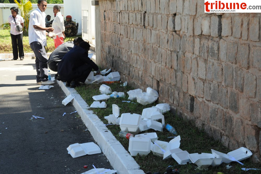 On voit que nous sommes à M/car, la population n’est pas eduquée à la protection de l’environnement et au BA - BA de l’hygiène et de la propreté,alors que si je comprends bien les repas étaient gratuits, peut-être il n’y avait pas de sac poubelle aux alentours.