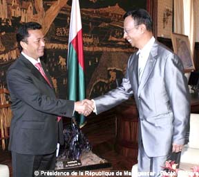 Ce fut une occasion de promettre au chef de l’Etat qu’il mettra au service du pays ses expériences en matière de relations internationales. « Je connais très bien Genève car j’y ai maintes fois effectué des missions dans le cadre de l’union interparlementaire, à l’époque où j’étais encore président du Sénat », a-t-il souligné. Et le prédécesseur de Noël Rakotondramboa au poste de premier vice-président de la Chambre Haute de poursuivre : « je ferai tout mon possible pour que Madagascar puisse bénéficier de l’aide des organisations internationales destinée aux pays qui ne seraient pas épargnés par la crise alimentaire mondiale ». Pour sa part, le président Marc Ravalomanana a renouvelé sa confiance envers son ancien directeur de campagne : « Je connais votre compétence. Le peuple malgache attend beaucoup de vous qui allez représenter Madagascar dans un pays où siègent les grandes organisations internationales comme l’ONUDI. Convaincre les investisseurs suisses à venir à Madagascar constitue également votre principale mission ».