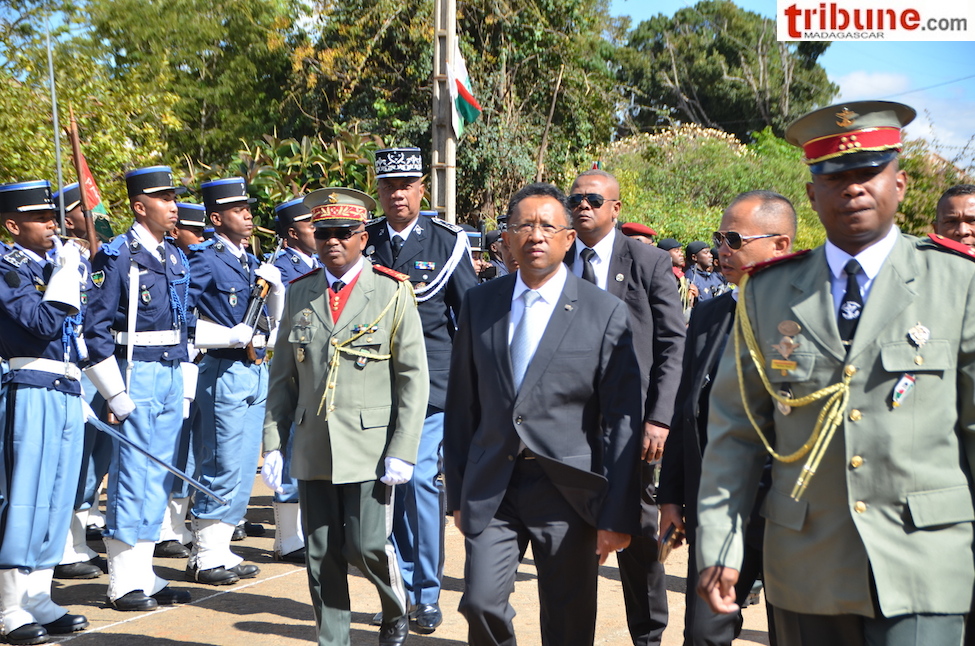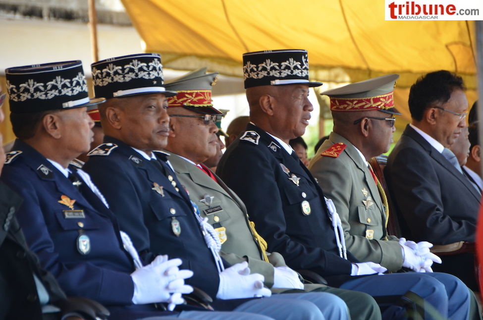 Le Président de la République, Chef Suprême des Forces Armées, Hery Rajaonarimampianina a présidé ce 12 mai la cérémonie de Passations de Commandement entre, d’une part, le Général de Corps d’Armée Rasolofonirina Béni Xavier (sortant) et le Général de Brigade Razafindrakoto Lantoarinjaka, nouveau Chef de l’Etat-Major Général de l’Armée Malagasy, suivie de celle entre le Général de Division Rakoto François Rodin (Sortant) et le Général de Brigade Ramiandrisoa Daniel, nouveau Commandant de la Gendarmerie Nationale.