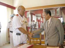 La passation de service entre le nouveau secrétaire général de la Défense, le général de brigade, Randriamisa Ramihone Amédée, et son prédécesseur, le général de division, Rakotondrabevala Marchel, s’est déroulée hier, au ministère de la Défense nationale à Ampahibe. Après la sortie du décret n° 2008-1020 du 29 octobre 2008, relatif à cette nomination, les personnalités concernées n’ont pas tardé pour faire la passation de service. Le SG sortant, le général de division, Rakotondrabevala Marchel, a occupé ce poste depuis le mois d’octobre 2006. Quant au nouveau SG du ministère de la Défense, c’est un docteur en Science politique selon son curriculum vitae présenté à la presse hier. Actuellement, il est détaché auprès de l’ENAM, en tant que conseiller technique. Il a déjà été Conseiller Spécial au sein de l’Office des Mines Nationales et des Industries Stratégiques ou OMNIS.