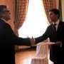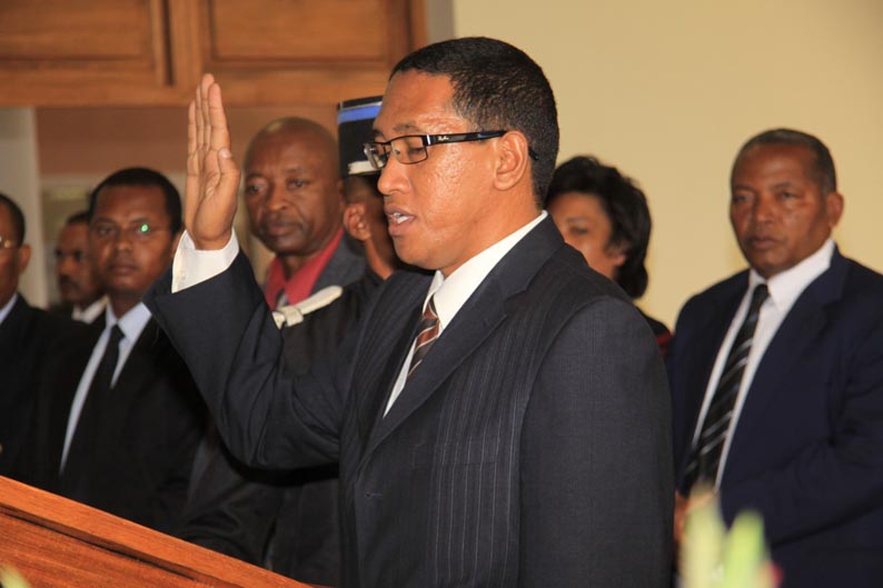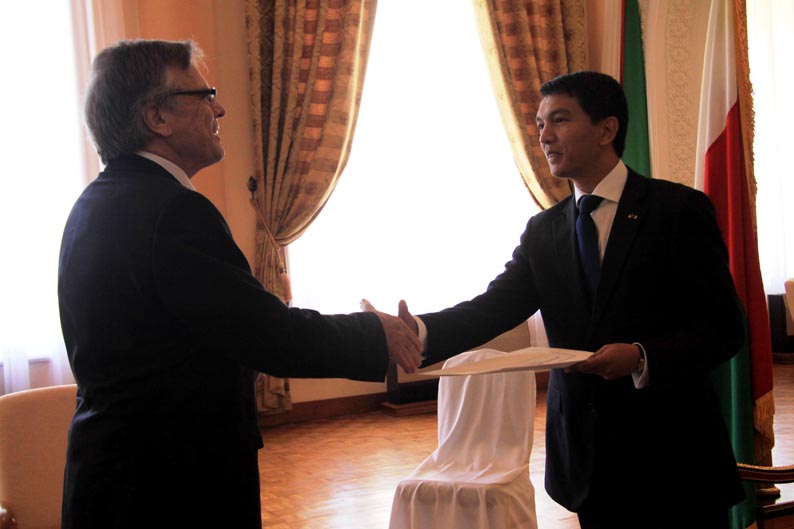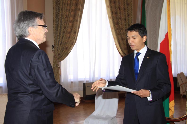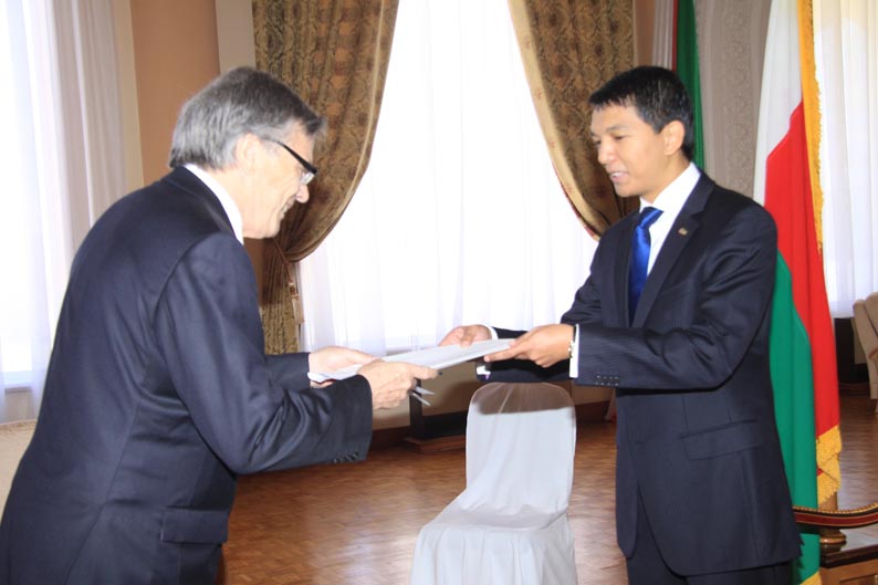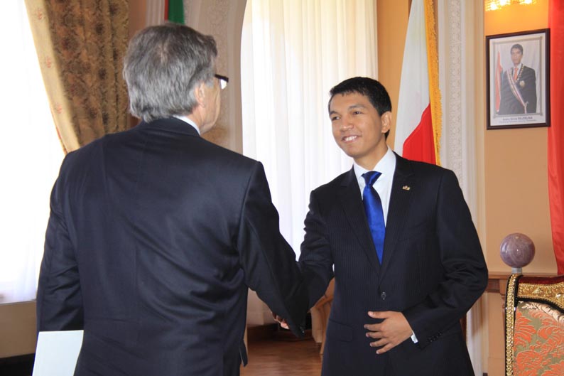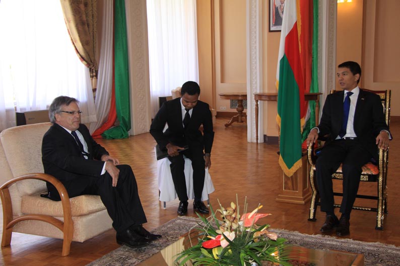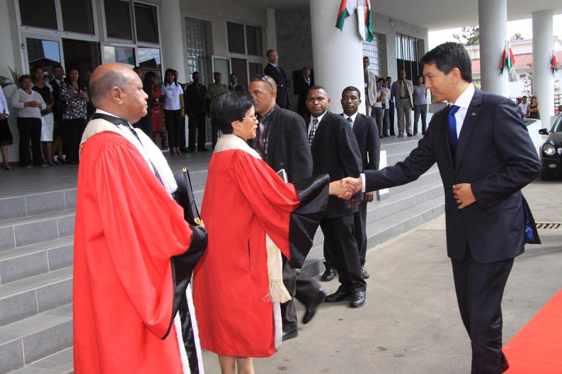 Sur les premières photos, l’hôte de Radomelina est souriant. Sur la sixième, par contre, assis sur son petit siège, il a l’air contrarié face à Sa Majesté Radomelina sur son trône en or.