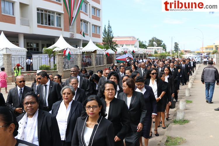 Les environs du tribunal à Anosy ont connu hier 19 décembre une grande manifestation officielle qui a surpris les justiciables et ceux qui fréquentent les bureaux ministériels mitoyens. Les autorités présidentielles, judiciaires et autres institutionnels ont défilé dans la rue adjacente au tribunal. En fait ce défilé entre dans le cadre de deux événements, d’une part la célébration officielle du 56è anniversaire de la Cour suprême et d’autre part l’inauguration des nouveaux locaux affectés au service des archives et de la délivrance des pièces judiciaires courant. Lors de la cérémonie le président de la République a appelé à l’intégrité et à l’indépendance de la justice pour être respectée et respectable.Les vindictes populaires de ces derniers temps en tout cas sont l’expression d’une perte de confiance envers la justice en raison de la prolifération de la corruption.