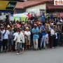 Quelques badauds de passage ,car cette rue est très fréquentée habituellement , qui regarde au passage comme les vaches ou zébus regarde passer les trains
