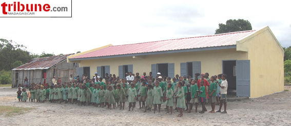 C’est le 5 novembre dernier que la clé de l’école primaire publique du fokontany Ambalona, région Vatovavy Fitovinany a été remise aux autorités locales. Cette école avait été ravagée par un cyclone au début de cette année 2009. L’organisation Hope for Madagascar avait promis de financer la réhabilitation de cette école. Les travaux ont commencé le 10 octobre dernier et ont duré vingt jours. 20 000 000 Ariary ont été nécessaires selon l’annonce faite par ladite organisation qui a financé la réhabilitation. Sur cette somme, la population bénéficiaire a participé à hauteur de 2 000 000 Ariary à travers la fourniture de sable, de bois et de pierre.