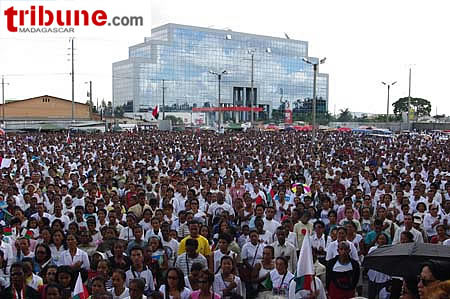 Intervenant samedi au téléphone devant une foule majoritairement vêtue de blanc, Marc Ravalomanana a annoncé qu’il était au Zimbabwe pour représenter Madagascar à la Conférence de la Comesa.