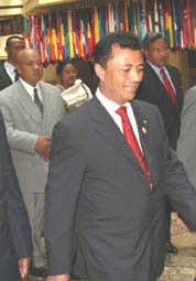 La délégation présidentielle conduite par le Président de la République, Marc Ravalomanana, est arrivée à l’Aéroport international de Mwalinu Nyerere, Tanzanie, le lundi 6 octobre dernier, vers 15h. Accueilli par son homologue, Jakaya Mrisho Kikwete, le Président malgache a été reçu avec les honneurs militaires, une cérémonie de bienvenue incluant les 21 coups de canon.