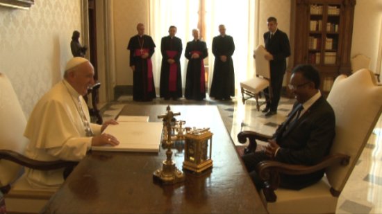 Samedi 28 juin 2014, suite à une invitation officielle du Pape François, le président de la République Hery Rajaonarimampianina et sa délégation ont été reçus officiellement par le souverain pontife, au Vatican dans la salle « Clémentine ».