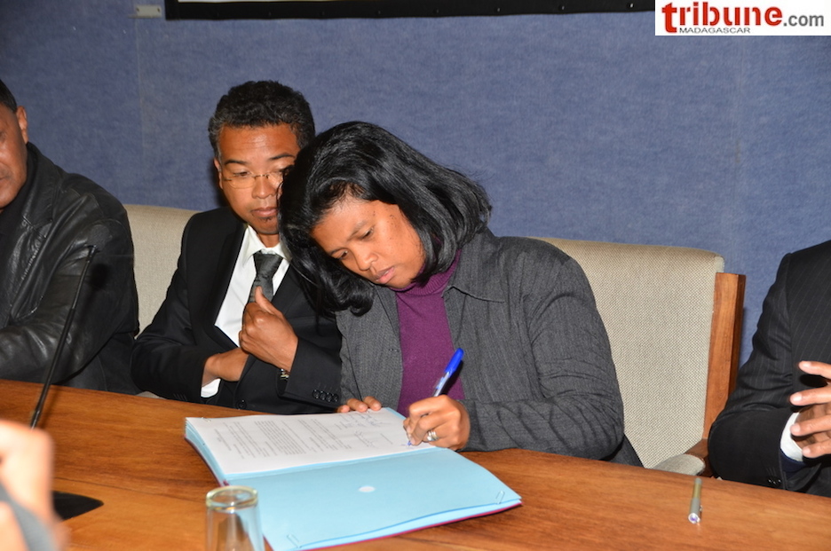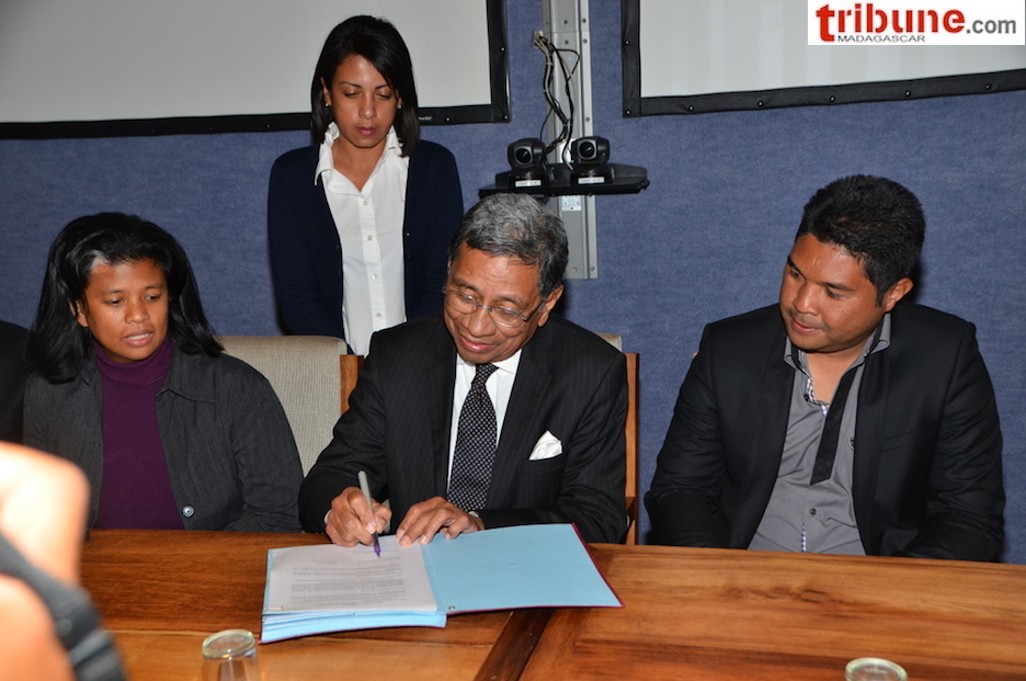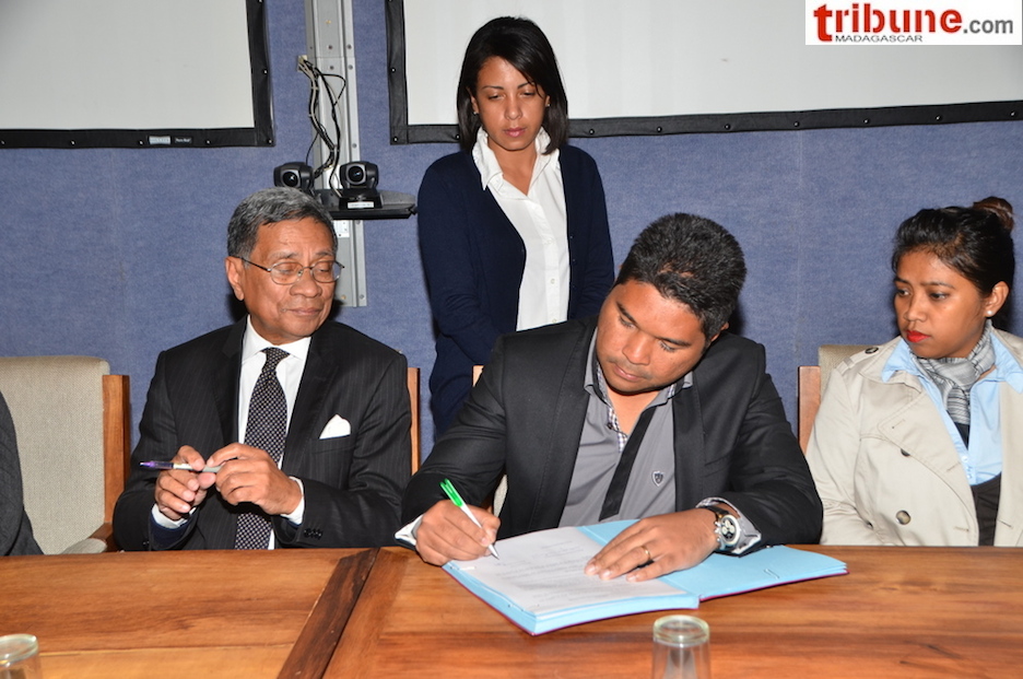 Ce vendredi soir du 17 juillet 2015, le président du Conseil d’Administration d’Air Madagascar, Léon Rajoabelina, et les leaders des employés grévistes d’Air Madagascar conduits par Rado Rabarilala, signent une convention pour mettre fin à la grève et pour la reprise du travail au sein de la compagnie aérienne nationale. Les grévistes ont obtenu satisfaction car le comité d’entreprise est reconnu et la Direction collégiale a été changée et recomposée. Les passagers et clients d’Air Madagascar peuvent espérer un retour sous peu d’Air Madagascar dans l’espace national et international de manière régulière. Le personnel a déjà commencé à des vérifications techniques des appareils, si on devait croire les dirigeants de la compagnie lors de cette cérémonie de signature qui s’est déroulée au DLC à Anosy. Léon Rajaobelina a promis comme le réclament les grévistes, un audit financier de la compagnie et la non ingérence du Conseil d’administration et du gouvernement dans la gestion de la compagnie. En fait, ils se sont mis d’accord sur les domaines de définition des uns et des autres.