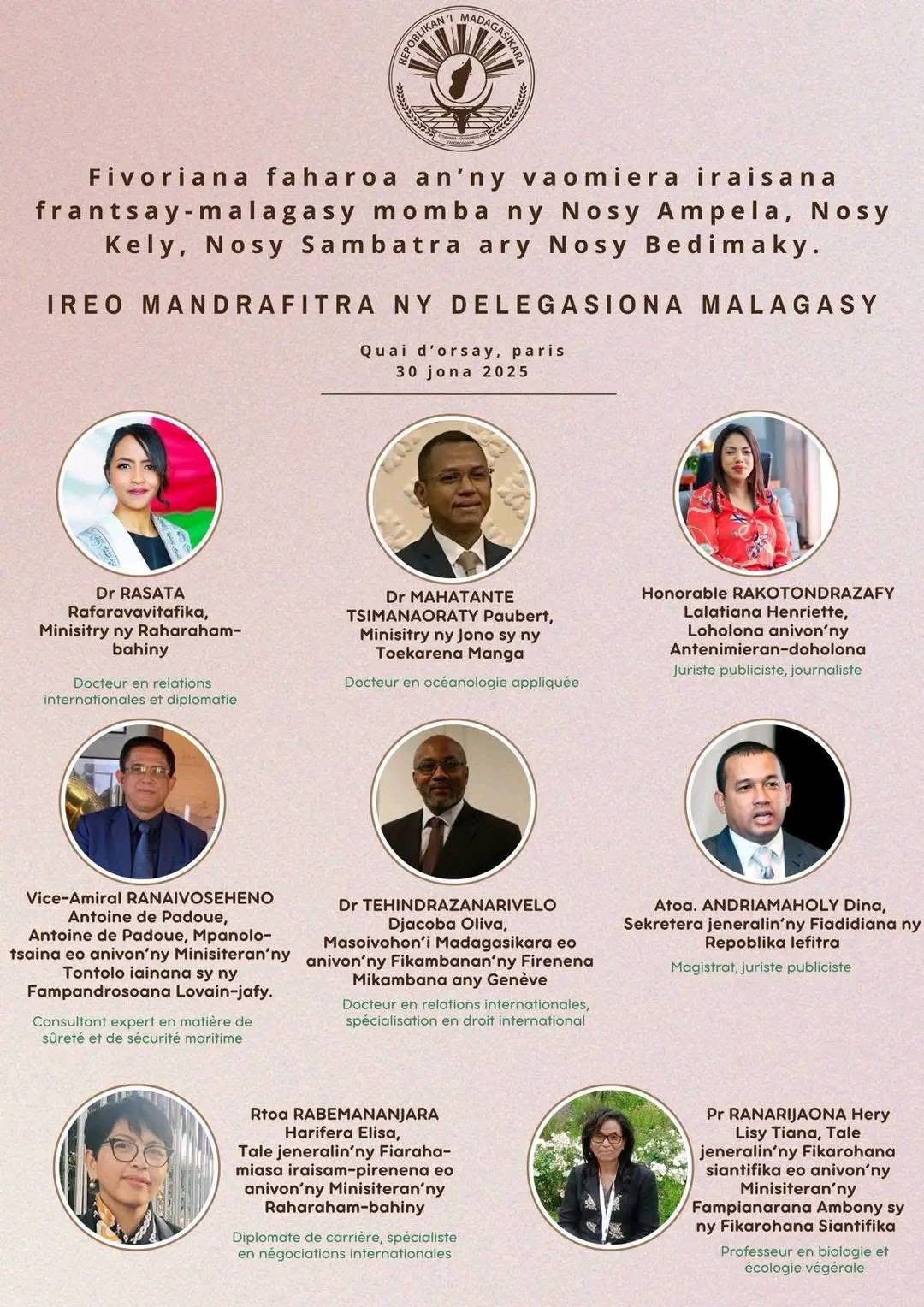 Restons lucide et pragmatique . L’annonce tardive et la composition de cette délégation choquent au plus haut point . Une dream team nauséabonde avec la présence inappropriée de la « putain de la république » du président Français de Madagascar . Nous n’allons pas entrer dans le débat stérile de restitution ou de cogestion. Ce serait une perte de temps. Regardons simplement les faits. Le président de Madagascar est juridiquement un citoyen français, naturalisé. Il ne possède plus la nationalité malgache. Ce n’est donc pas un cas de double nationalité ou de « double casquette » : c’est un chef d’État français à la tête de Madagascar. À partir de là, toute discussion sur les Îles Éparses devient caduque. Comment espérer récupérer un territoire à la France, quand c’est la France elle-même qui dirige Madagascar par l’intermédiaire de son propre citoyen ?