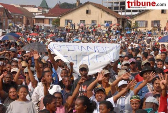 Les trois mouvances persistent et signent ; elles appellent leurs partisans pour un grand meeting au stade Malacam ce jour mercredi 10 novembre. Des insertions publicitaires dans ce sens sont publiées dans les journaux et circulent sur internet. Les trois mouvances veulent mener la vie dure et en découdre avec le processus déclenché par la Haute autorité de transition (HAT) : le référendum et surtout Andry Rajoelina. Elles ne cachent plus qu’elles veulent son départ.