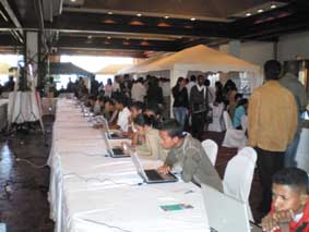 Le stand réservé pour la navigation Internet a attiré également les visiteurs. Contrairement aux jeux vidéos, l’accès à l’Internet a été entièrement gratuit. Les surfers ont 20 minutes pour naviguer et consulter les sites web. Les dizaines de machines qui ont été installées ont été apparemment insuffisantes face à la demande. C’est tout à fait normal. Quand le service est gratuit, beaucoup l’utilisent. Le prix d’entrée au Salon a été fixé à Ar 1 000.