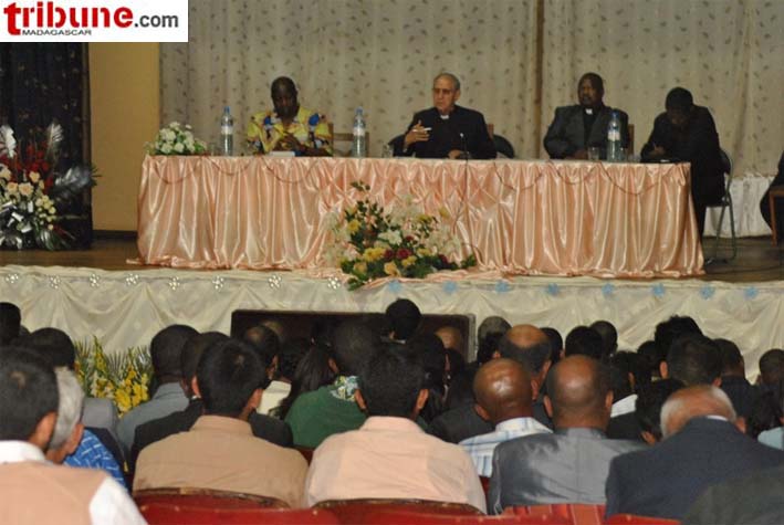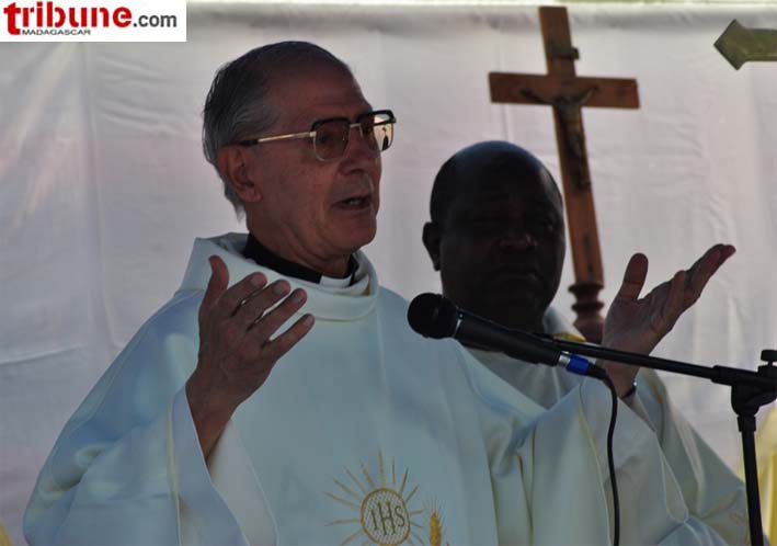 Le Père général des Jésuites, communément appelé le « Pape Noir » en raison de sa soutane noire, le Père Adolfo Nicolas, a célébré une messe dans l’enceinte du Collège Saint Michel Amparibe dimanche 8 mai dernier. C’était le summum de son séjour en terre malgache. Le général des Jésuites est arrivé lundi 2 mai et quittera le pays demain mardi 11 mai. L’objet de cette visite est de rendre hommage à ses condisciples, de les conforter dans leur foi et mission et de les encourager avec leurs partenaires dans leurs activités. Le message qu’il a transmis est le suivant : poursuivre la mission d’évangélisation sans frontières ; il faut aller en profondeur, surtout en ces temps de crise socio-économique ; il faut aussi oser aller aux frontières, idéologique, spirituelle, des classes, de la classe sociale et des mentalités. Enfin et non des moindres, il faut de la créativité dans la foi.
