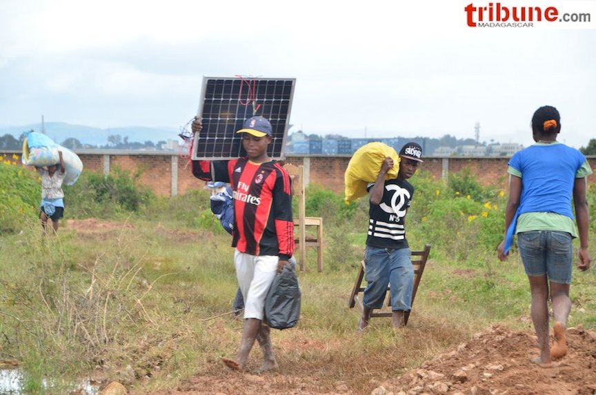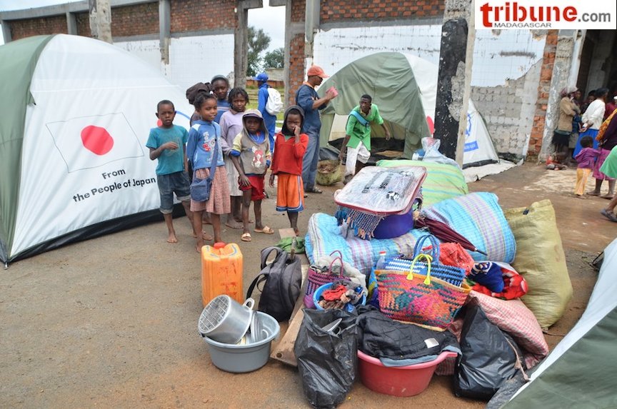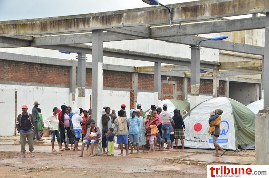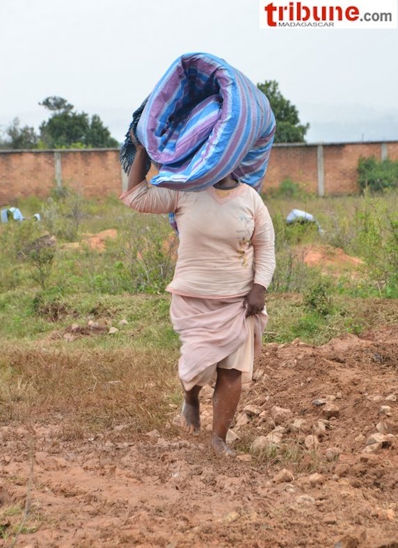 L’Etat a décidé sur les recommandations ou les remarques des bailleurs de fonds et des organismes d’aides, de rassembler les sans abri des suites des inondations et glissements et effondrements de terrain en un seul endroit. La place de l’ancien abattoir sis sur la route à Andohatapenaka a été choisie pour ce faire. Mais nombreuses sont les mères de famille et chefs de ménages qui refusent de rejoindre ce site, assez éloigné de leur habitation, des écoles fréquentées par leurs enfants et de leurs sources de revenus. Beaucoup de ces foyers vivent au jour le jour et ils doutent fort que d’une part « leurs patrons » viennent sur les lieux pour leur apporter du travail, que d’autre part, les aides apportées par l’Etat et les bienfaiteurs ne suffisent pour satisfaire leurs besoins quotidiens. Ils craignent ainsi pour leurs moyens de survie, leurs « petits métiers ». De plus, rapportent des mères de familles, « le PDS leur a fait comprendre que l’Etat ne peut leur promettre le manger quotidien ». Par ailleurs certains parmi ces sinistrés notent que « le président et sa suite sont juste passés ; ils ont regardé le site et ne leur ont pas adressé la parole. Puis ils sont partis ». C’est à certaine presse que ces autorités s’étaient adressées par la suite pour laisser entendre que le site de la route digue serait destiné à devenir un centre d’accueil durable en cas de sinistres pour des sans-abri.