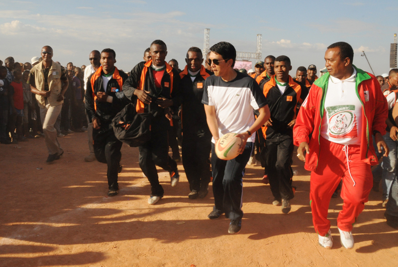 Contrairement aux attentes des observateurs, le président de la transition n’a pas évoqué un seul instant ce samedi 4 août à Andohatapenaka lors de la cérémonie de pose de première pierre du temple du rugby, les décisions de la CENI-T et des experts des Nations unies quant au calendrier électoral et à l’ordre des scrutins prévus pour seulement 2013, et non en 2012 comme il le souhaitait. Le président de la transition n’a pas non plus fait aucune allusion à la suite de la rencontre avec l’ancien président de la République ; il s’est comporté comme si la situation politique était calme pensant sans doute ou laissant croire que cela contribue à l’apaisement des esprits dans le cheminement dans la résolution de la crise comme réclamé par tous. Le représentant de l’entreprise Colas, titulaire des travaux d’exécution de ce stade aux normes internationales, a présenté brièvement, projection sur grand écran à l’appui, le stade Makis qui sera sur pied avant la fin de l’année. Aucune information toutefois sur le montant de la construction ni sur l’origine des financements.