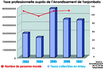 « La Loi des Finances 2008 a supprimé la taxe professionnelle (TP). À moins que cette taxe n’ait changé de nom, l’application de cette suppression engendrera une importante perte pour les caisses de la commune », selon Jean José Ramanantsialonina, chef d’Arrondissement Administratif de la Commune Rurale de Tanjombato.