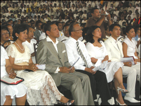Ranjivason Jean Théodore, général Désiré Ramakavelo, Roland Ratsiraka, Ny Hasina Andriamanjato, et Elia ravalomanantsoa. Tels sont les politiciens dont la présence a été remarquée lors du culte organisé par la Commune Urbaine d’Antananarivo, hier au gymnase couvert de Mahamasina. Ils se sont placés à proximité du staff du maire. En effet, ce sont les membres du staff, et leur époux respectif, qui ont entouré le maire Andry Rajoelina. Ainsi, parmi les politiciens, ce sont Ny Hasina Andriamanjato et son épouse, Elia Ravelomanantsoa et son époux qui étaient sur la même rangée que le maire, devant l’estrade. Par contre, l’aile dure et les figures emblématiques de l’opposition ont brillé par leur absence. La commune a pu montrer qu’elle n’est le pantin de personne et qu’elle peut se débrouiller seule. Ainsi, la déclaration à l’hôtel « La Rotonde » et l’ultimatum de 13 janvier 2009 sont le fruit d’une collaboration de plusieurs entités indépendantes.